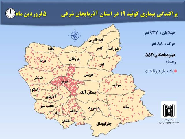 آخرین آمار کرونا در استان آذربایجان شرقی(99/01/05)