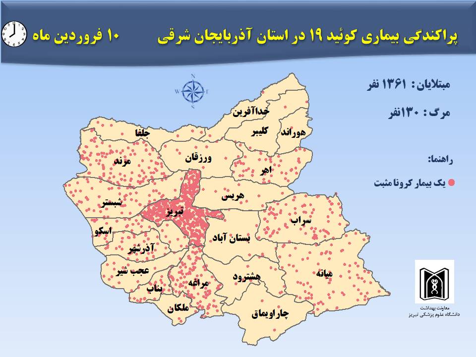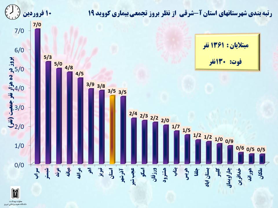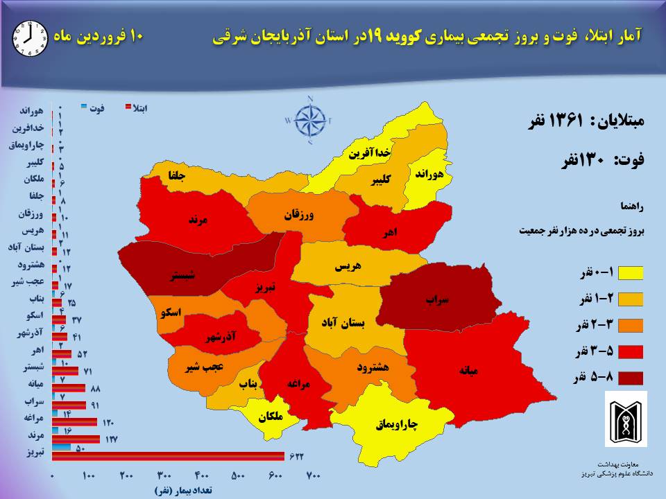 آخرین آمار کرونا در استان آذربایجان شرقی(99/01/10)