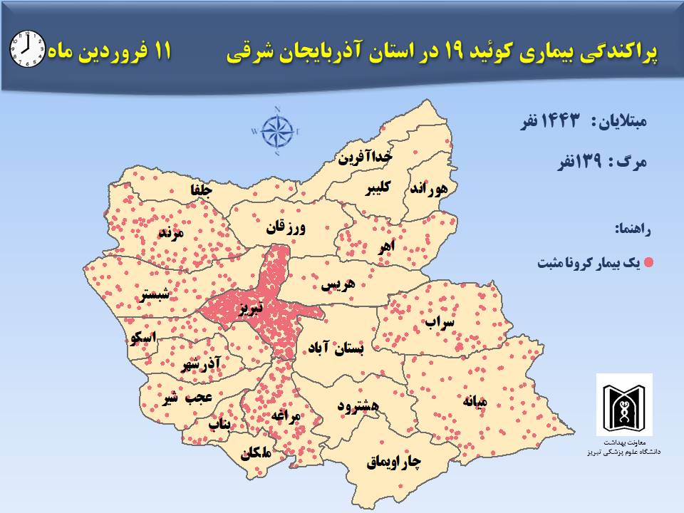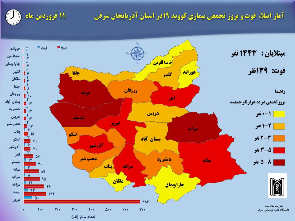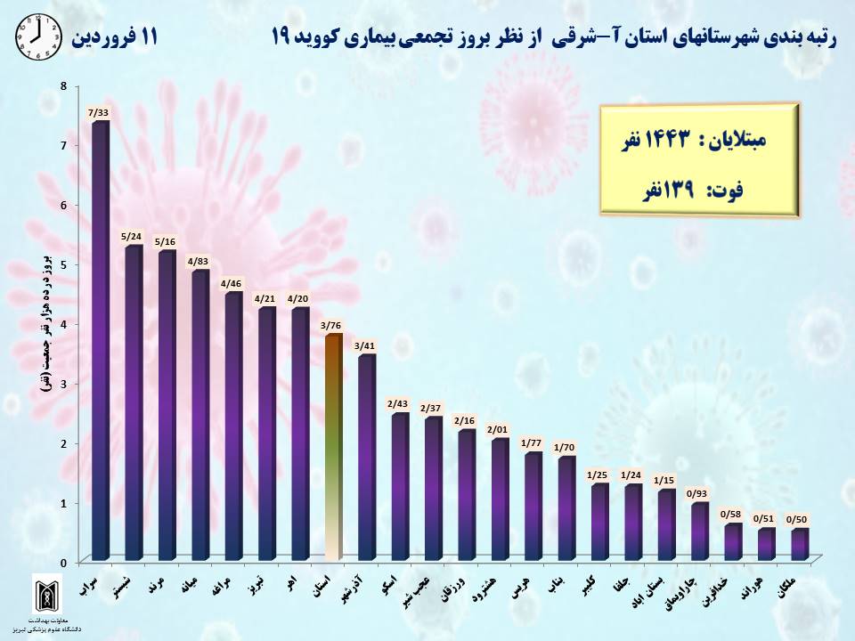 آخرین آمار کرونا در استان آذربایجان شرقی(99/01/11)