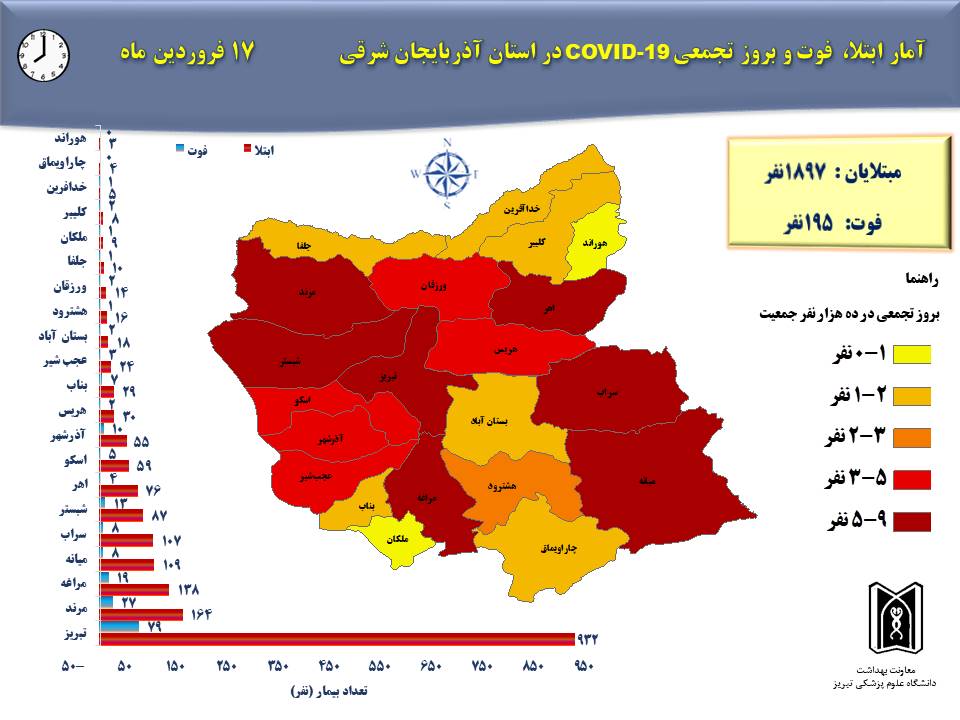آخرین آمار کرونا در استان آذربایجان شرقی(99/01/17)