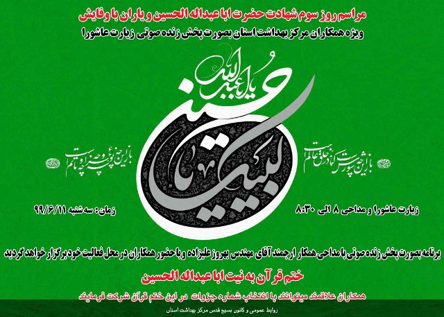 گفتنی است در این مراسم همکاران علاقمند با انتخاب جزء های قرآنی برای هدیه به سالارشهیدان حضرت ابا عبداله الحسین (ع) ختم دسته جمعی قرآن کریم را آغاز نمودند.