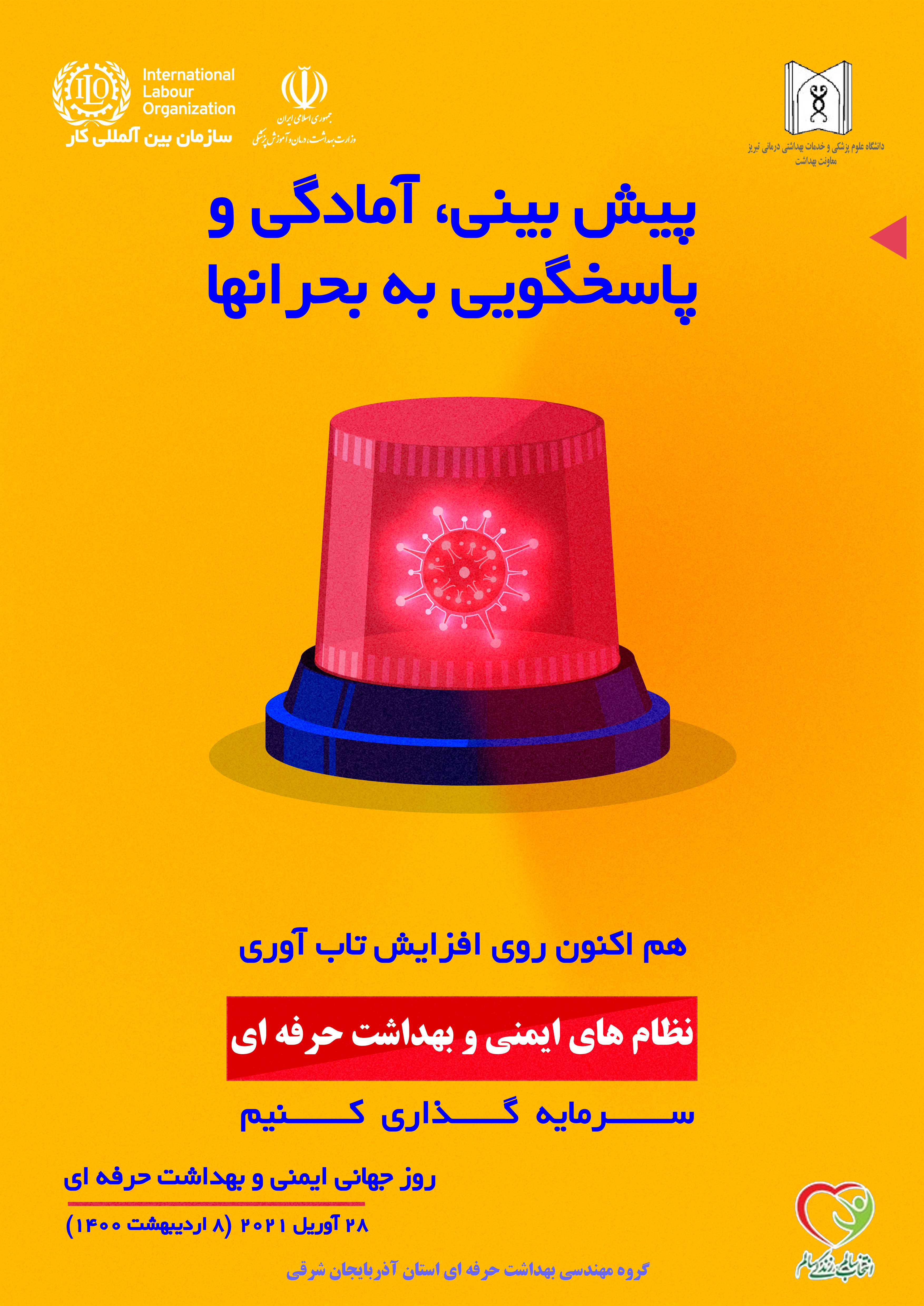 سازمان بین المللی کار (ILO) با شعار «پیش بینی، آمادگی و پاسخگویی به بحران» تاکید نموده است که «اکنون روی افزایش تاب آوری نظام های ایمنی و بهداشت حرفه ای سرمایه گذاری کنیم». امسال روز جهانی ایمنی و بهداشت حرفه ای بر راهبردهای تقویت سیستم های ملی ایمنی و بهداشت حرفه ای (OSH) برای افزایش تاب آوری تمرکز خواهد نمود تا با استفاده از تجربیات و درس آموخته ها بتوانیم با بحرانهای موثر بر سلامت شاغلین مقابله نماییم، چرا که تمرکز بر افزایش تاب آوری در محیط کار باعث می شود افراد در شرایط پراسترس توانایی انطباق با شرایط را داشته باشند و از امکانات و تجهیزات موجود به نحو احسن بهره مند گردند.