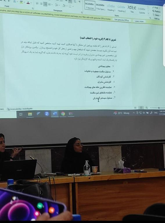 گفتنی است در ادامه مباحث بصورت تئوری و عملی کارهای گروهی توسط مدرسین دوره ، دکتر یثربی فوق تخصص نوزادان و خانم انصاری کارشناس نوزادان و کودکان معاونت بهداشت برگزار گردید.