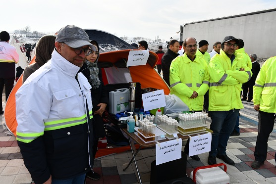 بر اساس سناریوی تهیه شده وابلاغ ماموریت به مرکز بهداشت شهرستان تبریز با هماهنگی وپشتیبانی گروه مدیریت کاهش خطر بلایای معاونت بهداشت ، واحد مدیریت خطر تبریز با مشارکت فعال همکاران بهداشت محیط وسایر گروههای فنی شهرستان ضمن فعال سازی سامانه فرماندهی حادثه مرکز وتدوین برنامه عملیاتی برای تمرین ومانور بزرگ ، مطابق با برنامه عملیات پاسخ به حوادث ( EOP ) اقدام نمودند. استقرار پست فرماندهی حادثه (ICP) در محل وقوع زلزله ، و 4 چادر برای تیمهای عملیاتی وآزمایشگاه سیار در محل تعیین شده با حضور 65 نفر از تیم های واکنش سریع مرکز بهداشت تبریز وگروه استانی در زمان تعیین شده ، اقدامات لازم ازجمله سمپاشی و مه پاشی -نمونه برداری از آب ومواد غذایی –نظارت بر بهداشت چادرها وسرویسهای بهداشتی –شناسایی جمعیت پرخطر اسکان داده شده واستقرار نظام مراقبت بیماریها و اقدامات روانی وتغذیه ای وآموزشی بصورت فعال در این مانور شرکت نمودند .