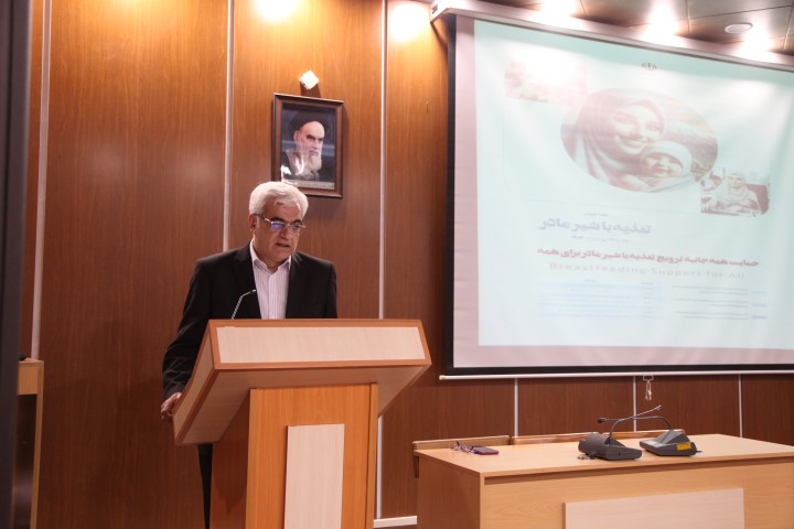 دکتر واعظی رئیس مرکز آموزشی درمانی و پژوهشی الزهراء ضمن خیر مقدم به مدعوین در خصوص اهمیت تغذیه با شیر مادر و برنامه های حمایتی در این خصوص مطالب خود را ارائه نمودند.
