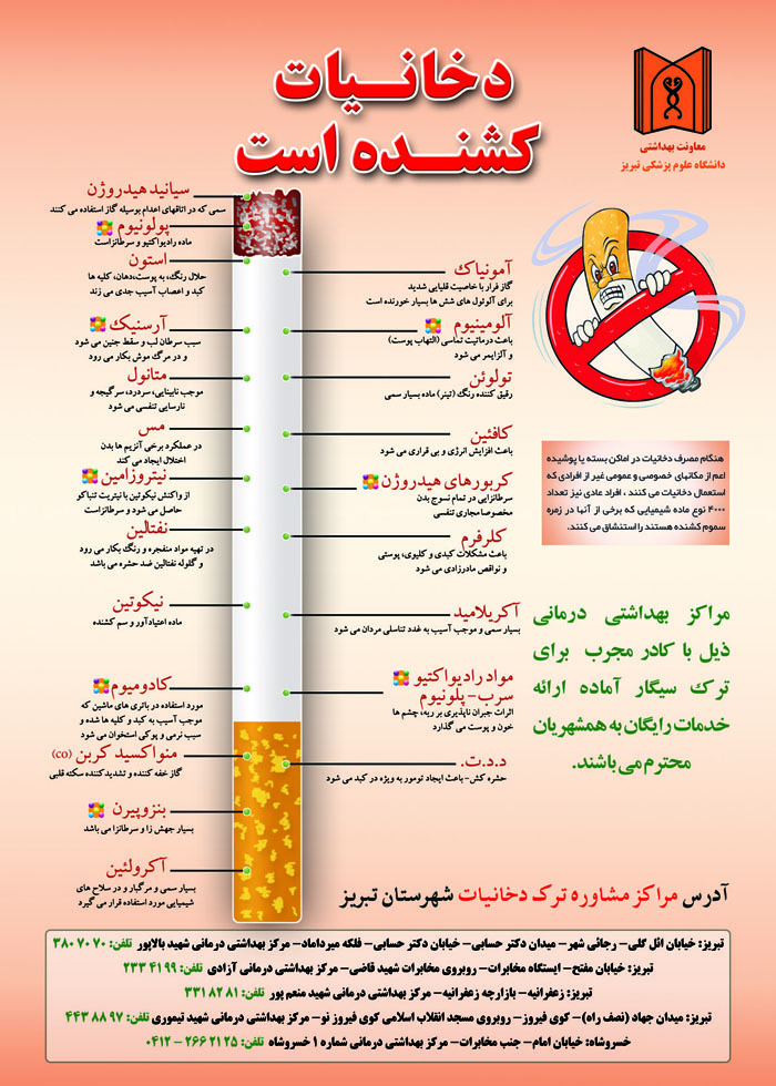به مناسبت هفته ملی دخانیات جلسهای آموزشی با حضور رابطین سلامت ادارات استان در مورخه 11/3/93 در معاونت بهداشت دانشگاه علوم پزشکی تبریز با موضوعات پیشگیری از استعمال دخانیات، عوارض دخانیات بر بهداشت دهان و دندان، بیماریهای قلبی عروقی، دود محیطی و قوانین مرتبط با دخانیات تشکیل گردید