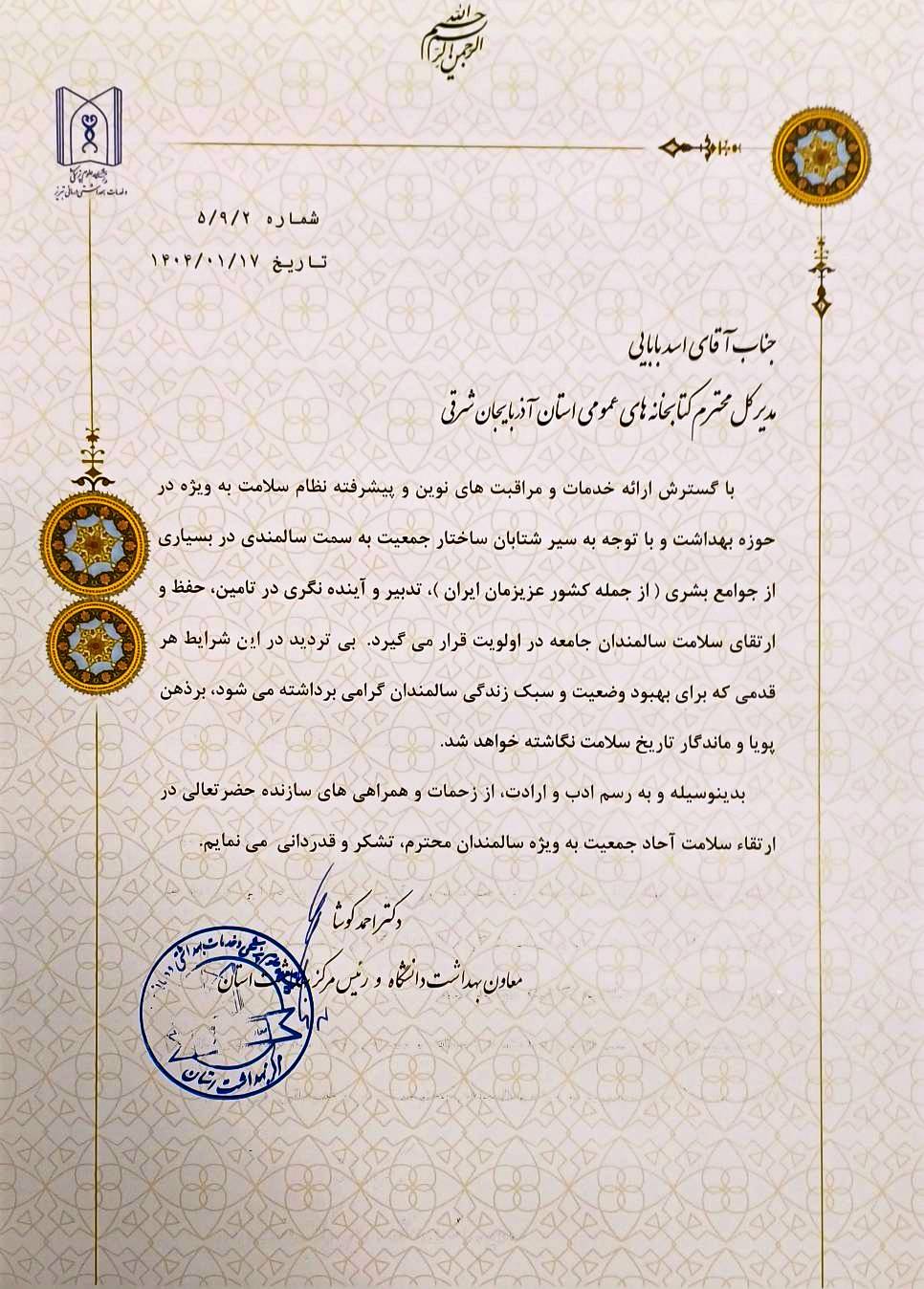 تقدیر معاون بهداشت دانشگاه علوم پزشکی تبریزاز مدیرکل و همکاران کتابخانههای عمومی آذربایجان شرقی
