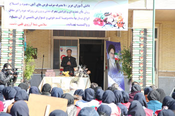 مراسم نمادین اجرای برنامه"ارتقاء سطح سلامت دانش آموزان دخترانه دوره اول و دوم متوسطه از طریق آموزش تغذیه و آهن یاری"در مورخ 05/08/93 با حضور معاون بهداشت دانشگاه علوم پزشکی تبریز جناب آقای دکتر تبریزی، رئیس مرکز بهداشت شهرستان تبریز، مسئولان وکارشناسان اداره کل آموزش و پرورش استان و ناحیه 5تبریز،مدیران و کارشناسان مرکز بهداشت استان و شهرستان تبریز در مدرسه دخترانه فرزانگان ناحیه پنج آموزش وپرورش برگزار گردید.در این مراسم ابتدا آقای صادق زاده معاون پرورشی ناحیه 5تبریز، ضمن خیرمقدم گویی به حسن اجرای برنامه آهن یاری و وضعیت مصرف قرص آهن اشاره نمودند.