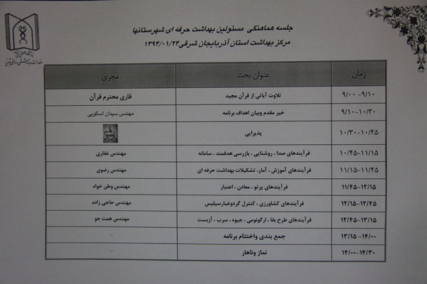 مهندس سیدان اسکویی رئیس گروه مهندسی کارشناسان بهداشت حرفه ای مرکز بهداشت استان ضمن عرض تبریک سال جدید با اشاره به برنامه های آتی بهداشت حرفه ای و سیاستهای وزارت متبوع، از تمامی کارشناسان خواستار جدیت در فعالیتها و پیگیری اجرای بهتر برنامه های اعلامی از طرف مرکز بهداشت استان شدند.