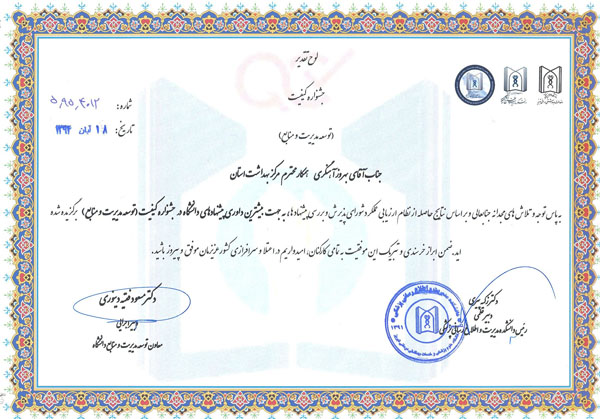 در حیطه روابط عمومی نیز از دانشکده مدیریت و اطلاع رسانی تجلیل به عمل آمد.