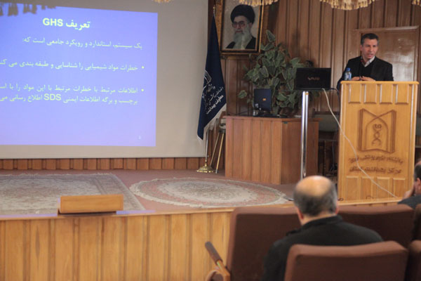 دکتر علیزاده عضو هیئت علمی دانشکده بهداشت دانشگاه علوم پزشکی تبریز نیز مطالبی در خصوص استاندارد بین المللی ایمنی مواد شیمیایی، سیستم هماهنگ سازی جهانی، طبقه بندی و برچسب گذاری مواد شیمیایی (GHS )، مدیریت حوادث شیمیایی، كنترل مواد خطرناك، قوانين و مقررات بين المللي در خصوص مواد خطرناك ارائه فرمودند