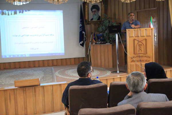 دکتر فرح بخش روانپزشک و رئیس مرکز مطالعات و پژو هش های مرکز بهداشت استان نیز در زمینه تکنیک های مداخله در موارد اقدام به خودکشی برای مراجعین اروژانس مطالب لازم را ارائه نمودند.