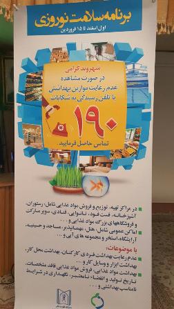 برنامه سلامت نوروزی بهداشت محیط همزمان با سراسر کشور از تاریخ اول اسفند ماه سال 95 لغایت 15 فروردین 96 در راستای ارتقاء وضعیت بهداشت فردی، بهداشت مواد غذایی، ابزار و تجهیزات و وضعیت بهداشتی ساختمان و با هدف حفظ و ارتقای سلامت شهرورندان در ایام تعطیلات نوروزی در استان آذربایجان شرقی در حال اجرا می باشد.
