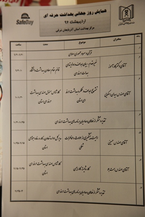 گفتنی است امسال در مسیر تعیین شده از سوی سازمان بین المللی کار و با نظر مرکز سلامت محیط و کار وزارت بهداشت ، درمان وآموزش پزشکی ، شعار« محیط کارایمن و سالم در گرو بهینه سازی اطلاعات ایمنی وسلامت کار » انتخاب گردیده است.