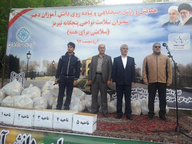 به گزارش روابط عمومی مرکز بهداشت استان ، همایش 10 هزار نفری ورزش صبحگاهی و پیاده روی دانش آموزان دختر سفیران سلامت نواحی پنجگانه تبریز با شعار "سلامتی برای همه" در پارک بزرگ ائل گلی تبریز با حضور معاون سیاسی و امنیتی استاندار و مدیر کل آموزش و پرورش آذربایجان شرقی و کارشناسان مرکز بهداشت استان برگزار شد.