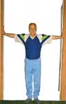 2- در بین چارچوب یک درب بایستید. دست های خود را در امتداد شانه ها به چارچوب تکیه داده و از دو طرف به چارچوب فشار آورید. از یک تا ده بشمارید و رها کنید. در حین انجام حرکت نفس بکشید. |