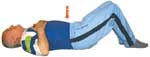 4- به پشت بخوابید زانوها را خم کنید ( کف پا روی زمین باشد ). دست ها را در طرفین بدن قرار دهید با انقباض عضلات شکم سعی کنید کمر را به زمین بچسبانید. از یک تا ده بشمارید و سپس رها کنید. |