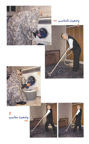 برای خم شدن ، ابتدا پاها را کمی باز کنید. شکم را سفت کرده و کمر را صاف نگه دارید شانه ها را به سمت عقب بکشید. سپس با خم کردن مفصل ران و زانو خم شوید. هنگام گذاشتن یا برداشتن اشیاء نیز دقت کنید که به طور صحیح خم شوید. البته با کمی دقت می توانید بسیاری از کارهای روزانه را بدون خم کردن کمر انجام دهید. |