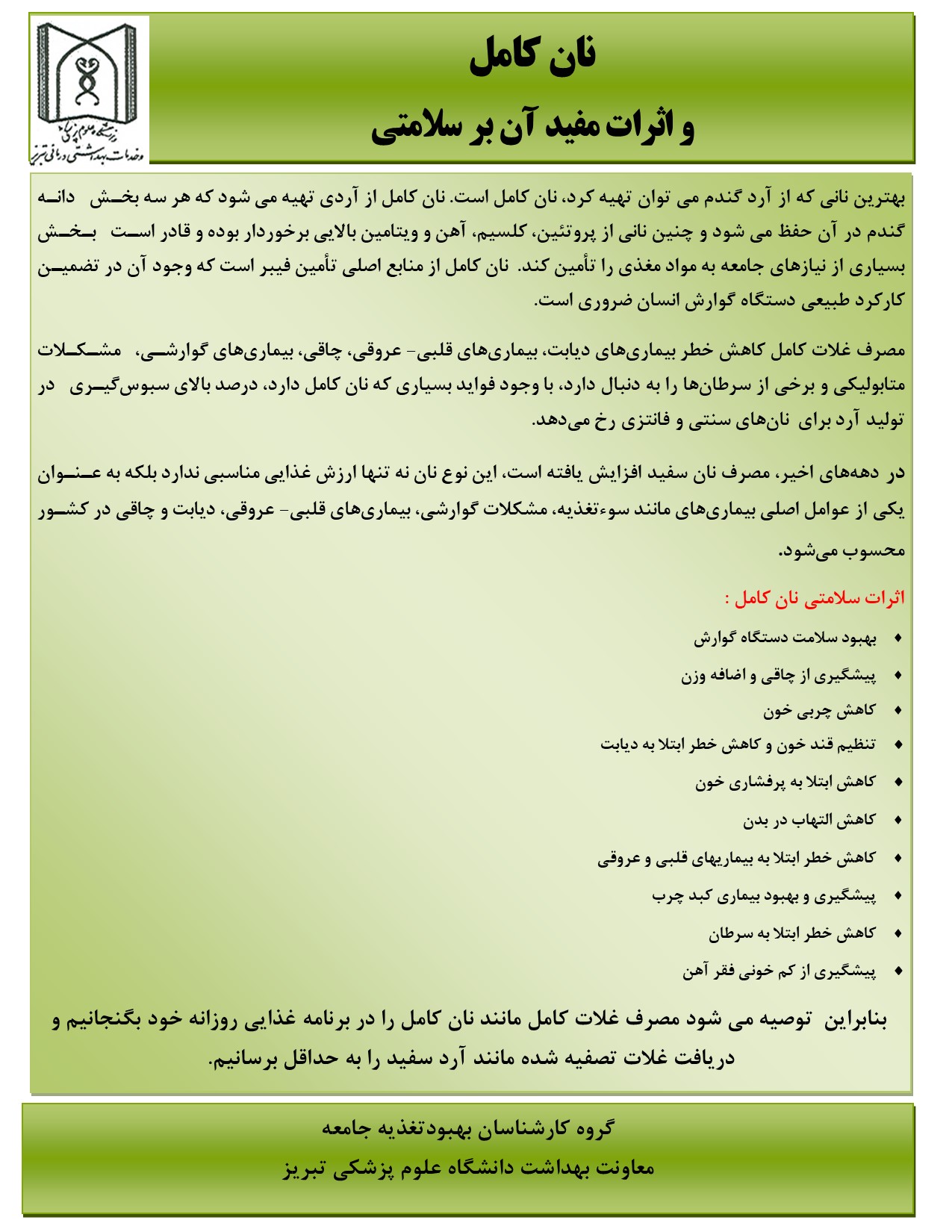 پیام های تغذیه ای بسیج ملی تغذیه